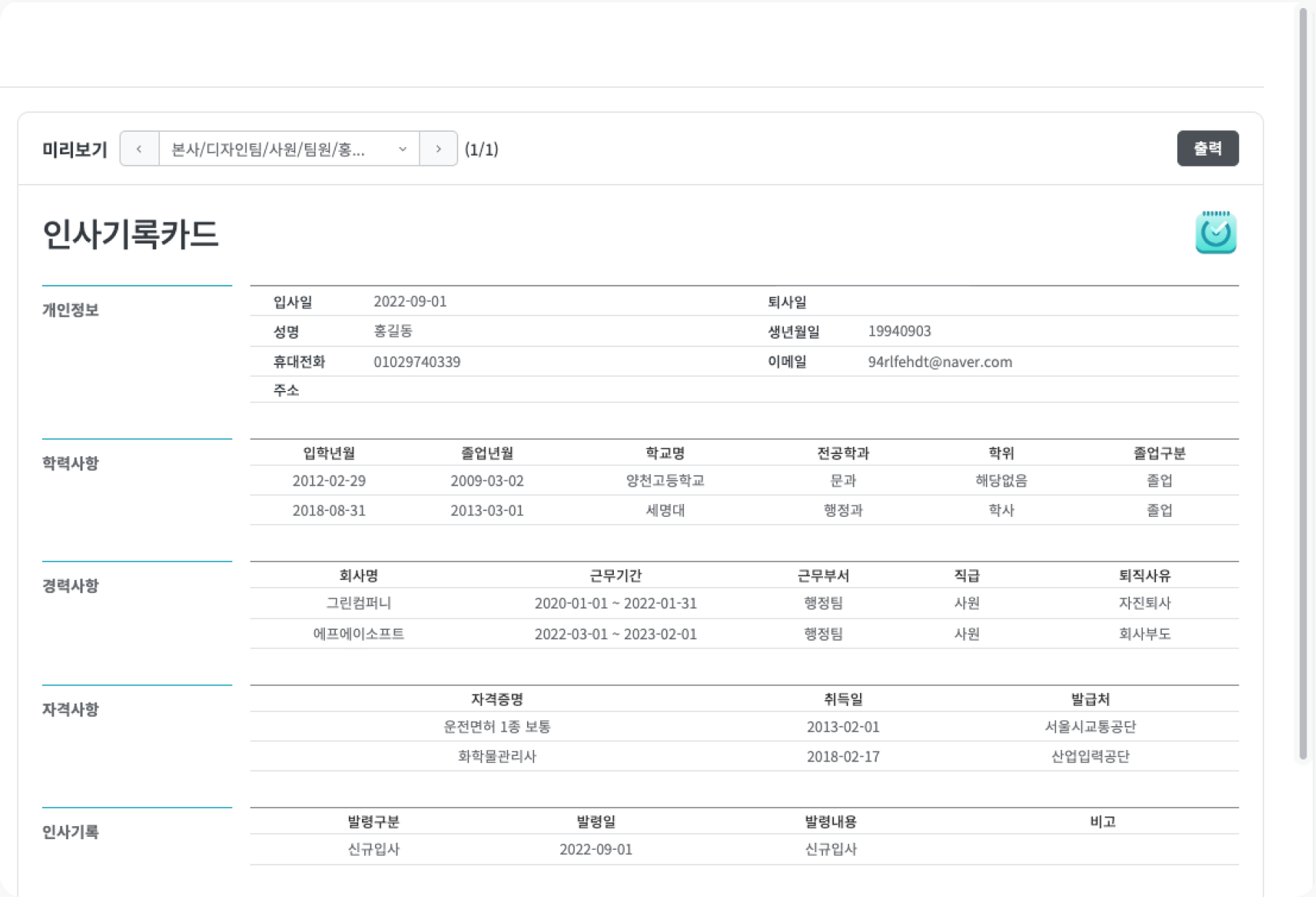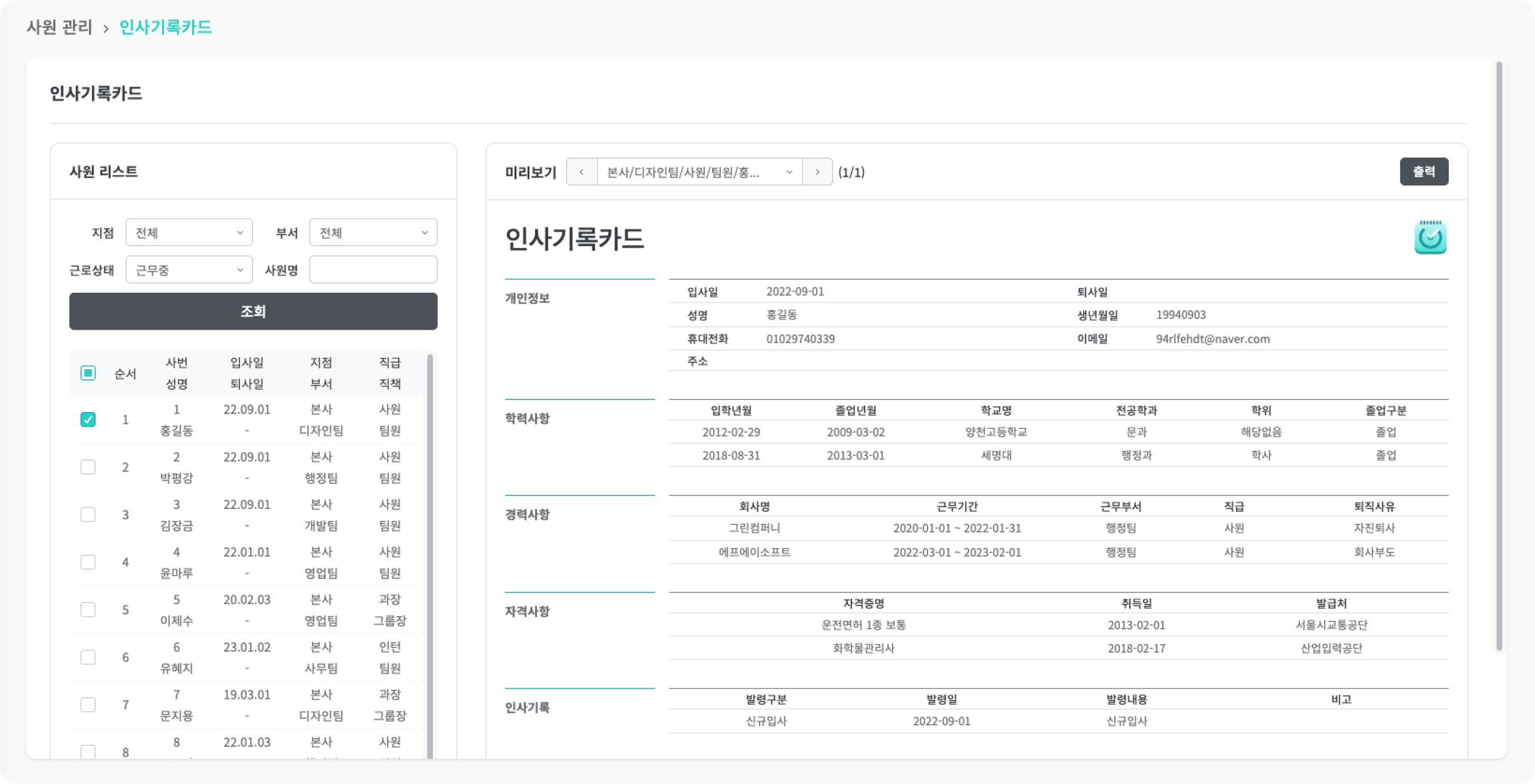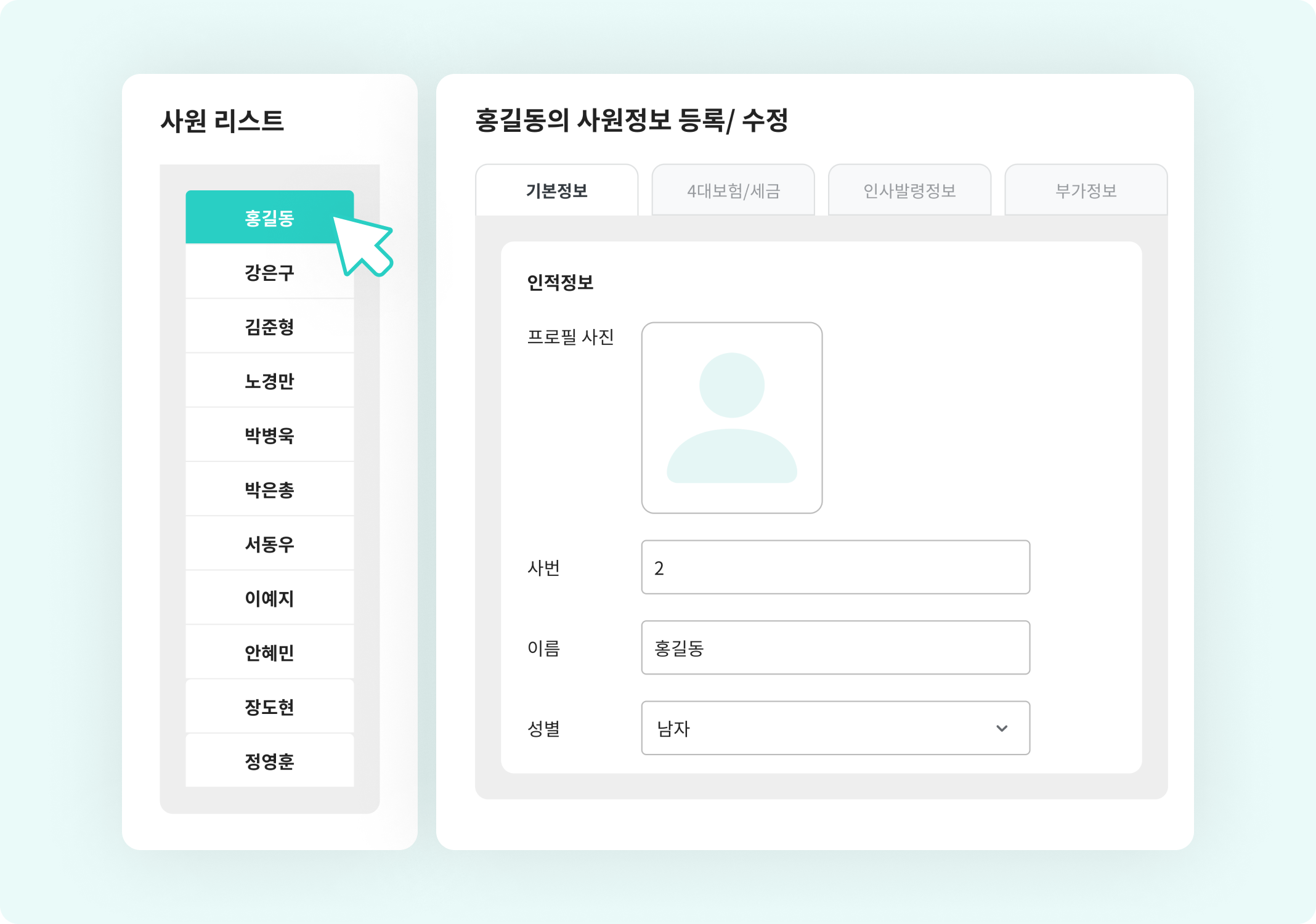 기본적인 기업 설정부터 디테일한 근로자 개인의
