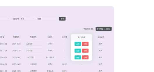 신청 건별 개별 승인/반려는 일괄 자동 승인 기능으로 대량 처리도 신속하게 완료할 수 있어요.