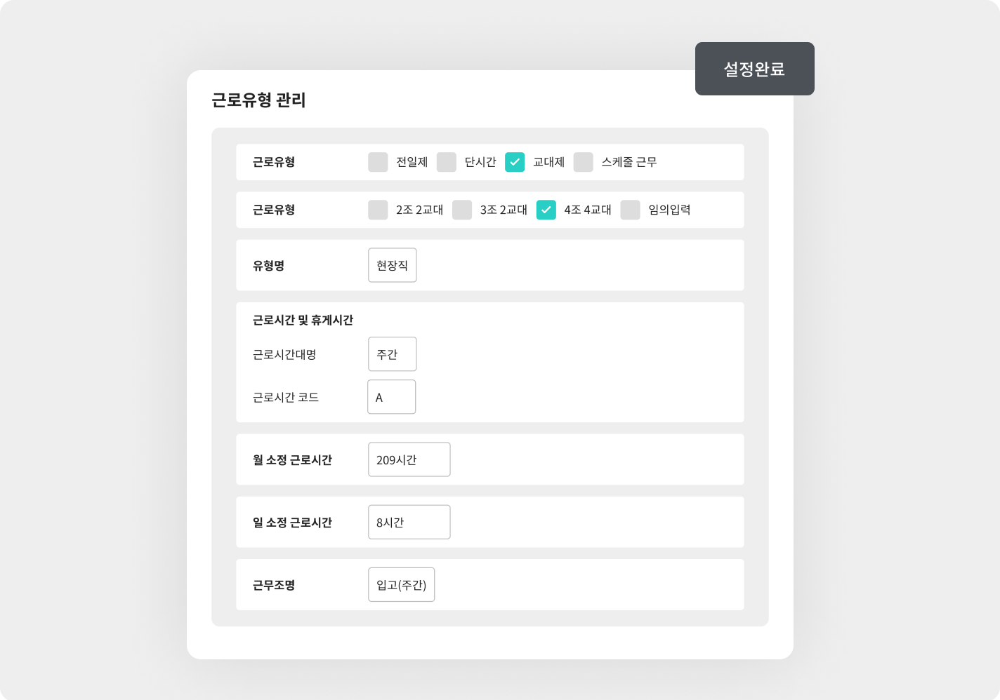 근무환경에 맞도록 출·퇴근 시스템을 설정하고